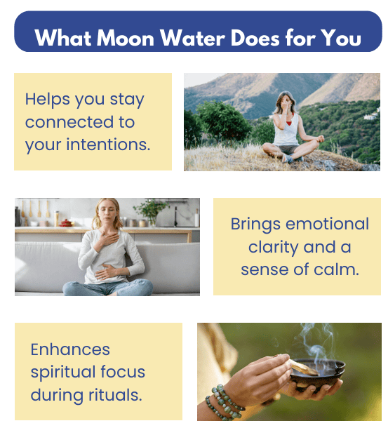 Inside, you’ll find practical wisdom, inspiration, and rituals that help you stay connected to your intentions, bring emotional balance, and deepen your connection with the natural cycles of life. Whether you drink your moon water, use it in meditation, or bless your home and plants, this guide makes it simple to weave lunar magic into your everyday routine.